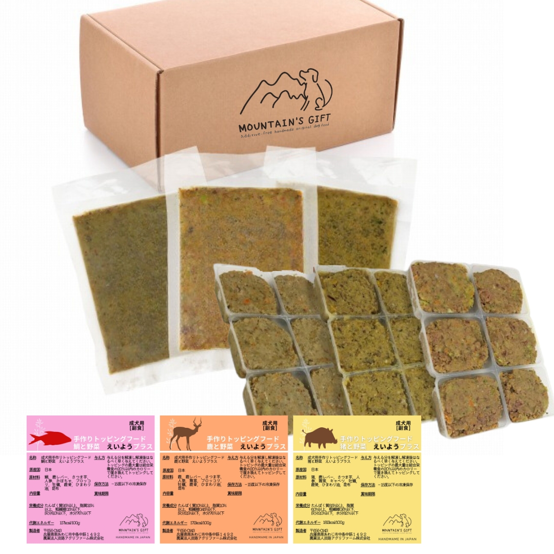 国産無添加 手作りトッピングフード えいようプラス3種セット(旧バランス栄養食 ジビエと真鯛セット)鹿・猪・鯛