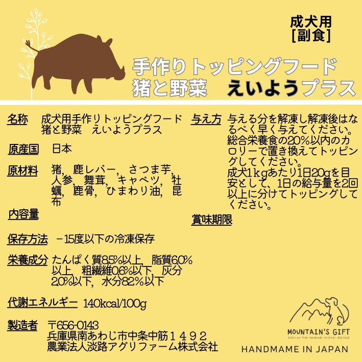 国産無添加 手作りトッピングフード 猪と野菜えいようプラス(旧 猪肉のバランス栄養食)
