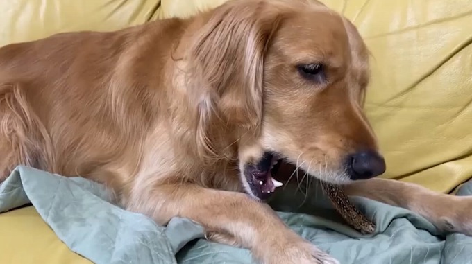 ゴールデンレトリバーのマシュー君は鹿角ガジガジで毎日歯磨き!夢中でかじってストレス発散にも効果あり!!