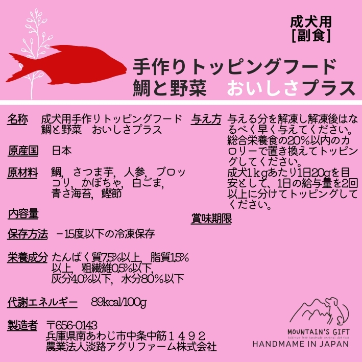 国産無添加 手作りトッピングフード鯛と野菜おいしさプラス(旧 天然鯛の手作りフード)