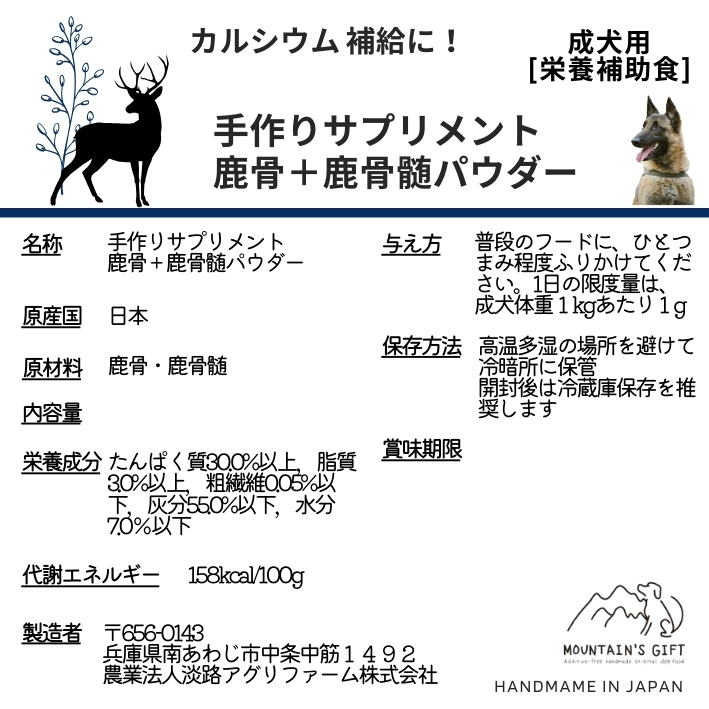 【栄養補助食】鹿骨+骨髄パウダー