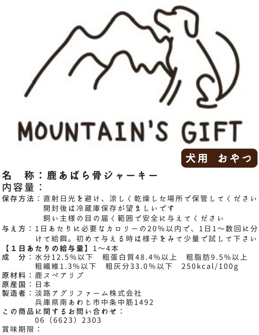 - 添加物、保存料はいっさい使用しておりません。適切な給与量は犬種・体重・年齢・性質・運動量などにより異なりますが、目安として1日に1本までを上限として誤飲に注意して、飼い主様の目の届く範囲であげてください。骨はカルシウム分が多いので、あげすぎると便秘になることがあります。また、翌日の便に骨が混じることがありますが問題はありません。