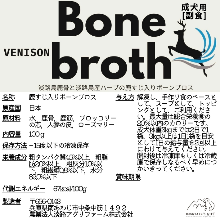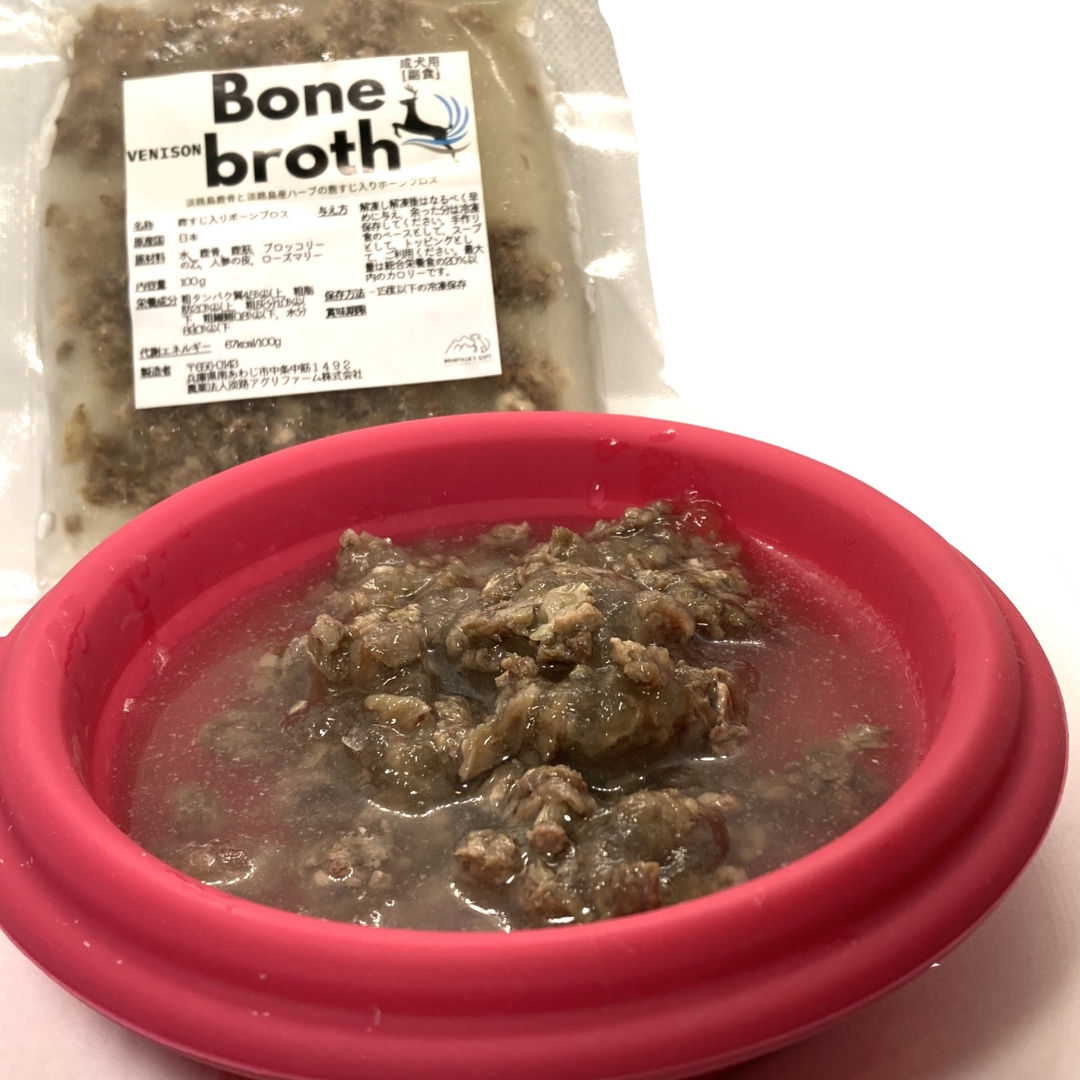 - 水、鹿骨、鹿筋、ブロッコリーの芯、人参の皮、ローズマリー